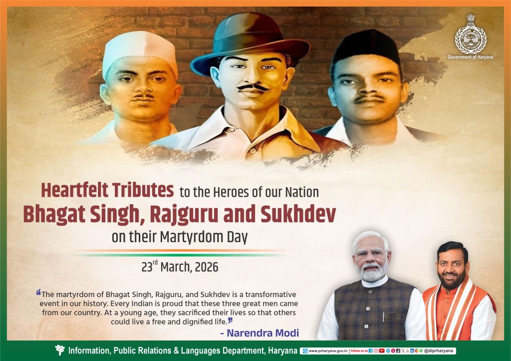 शहीदी दिवस (भगत सिंह, राजगुरु और सुखदेव) 23 मार्च, 2026. (24.03.2026)