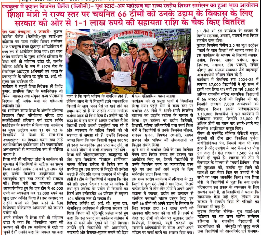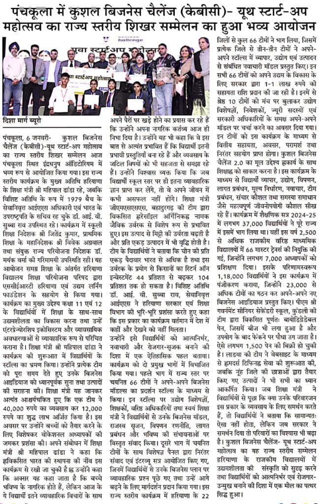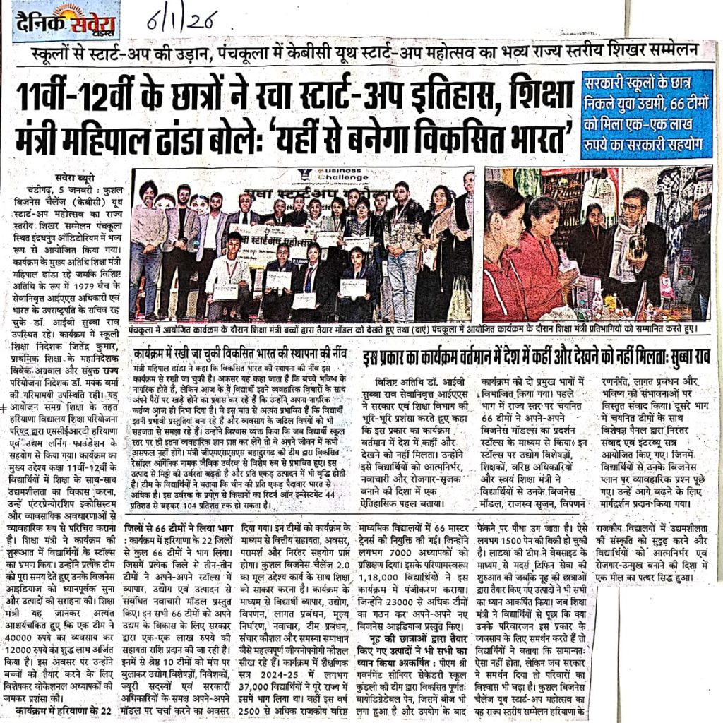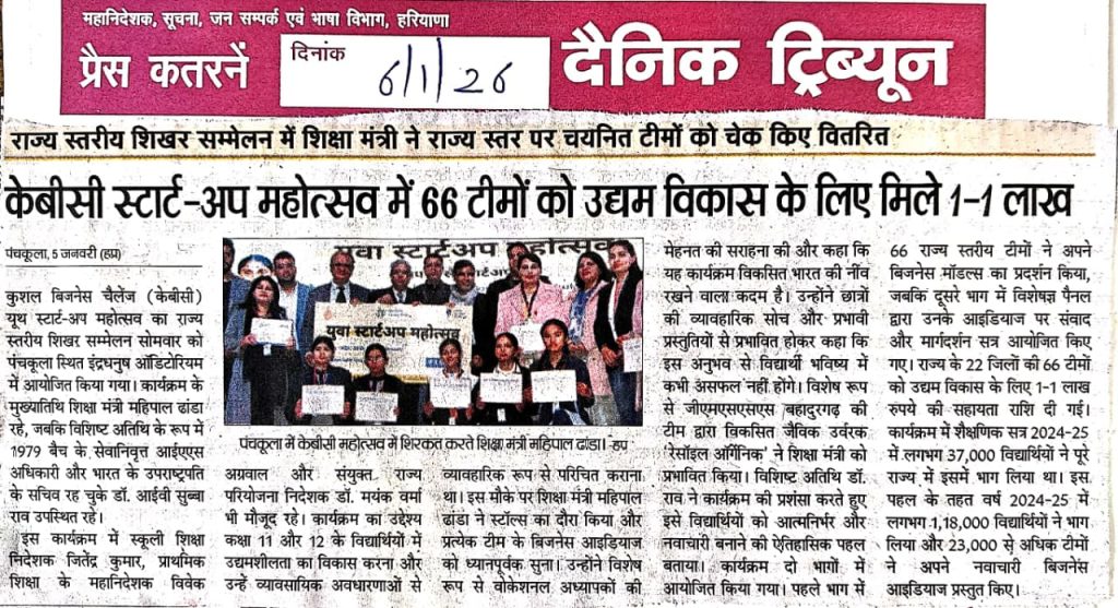 [News at a Glance] Youth start-up summit held in Panchkula (Kushal Business Challenge). (06.01.2026)