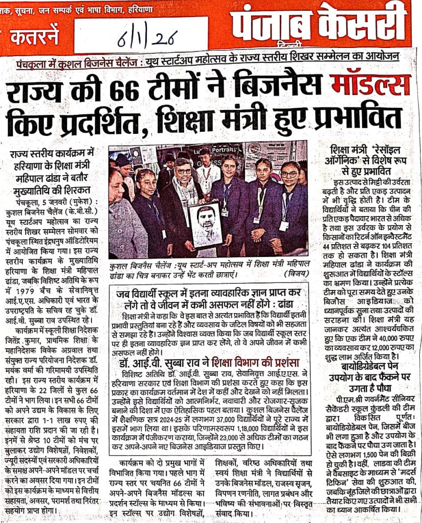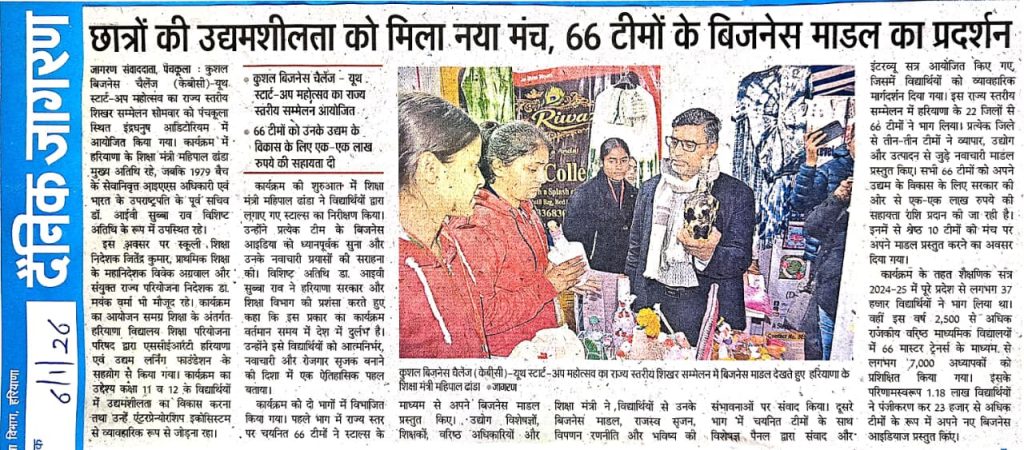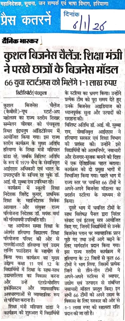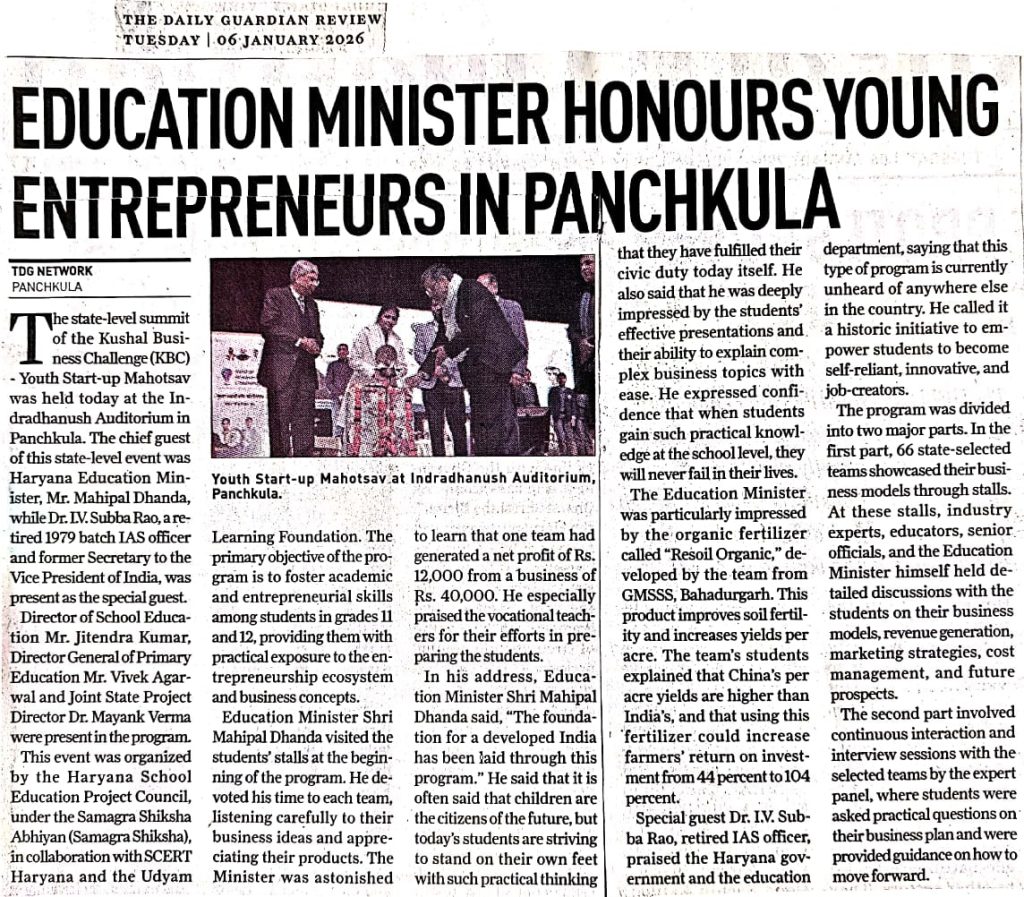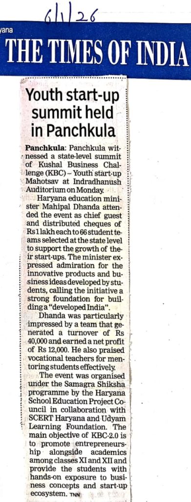 [News at a Glance] Youth start-up summit held in Panchkula (Kushal Business Challenge). (06.01.2026)